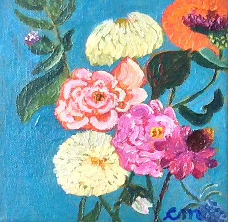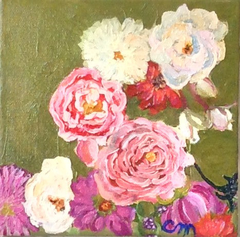 The pieces in this collection tend to be smaller scale than my tree paintings. I paint them from fresh flowers indoors during inclement weather - i.e. pelting rain or severe cold when it is just too miserable to be painting en plein aire - outdoors.